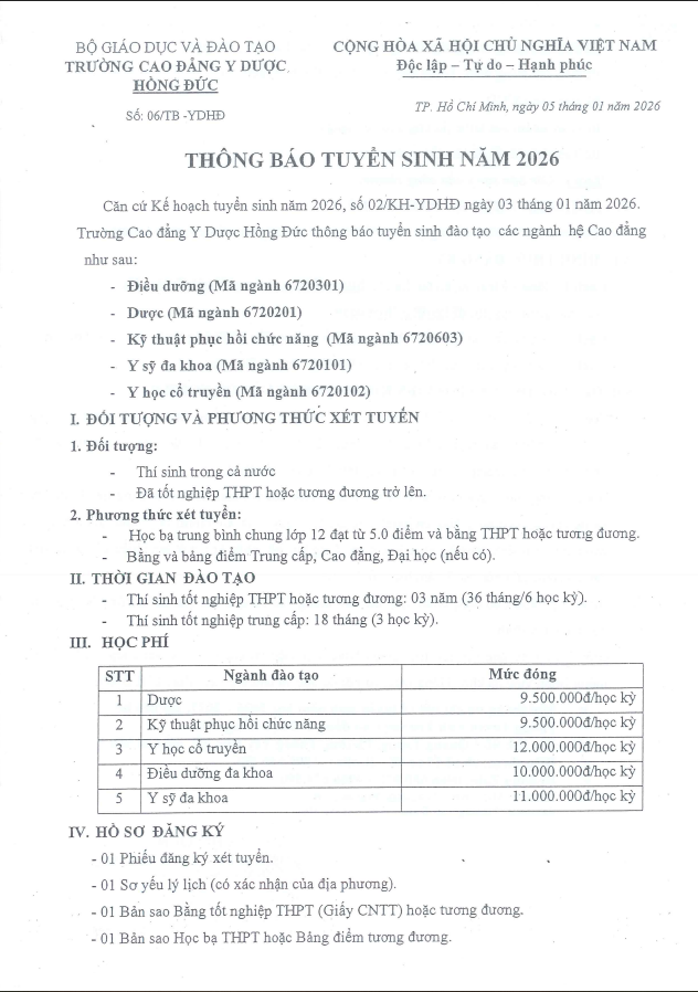 THÔNG BÁO TUYỂN SINH NĂM 2026